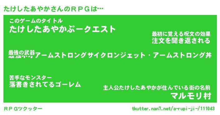 | ツイッター | たけしたあやかさんのツイッターID『katatsumuri_man』 |