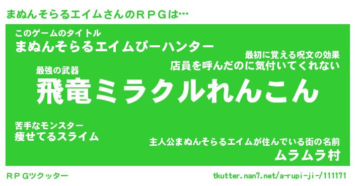 | 伝説のあだ名 | 『封印されし竜騎士まぬんそらるエイム』 |