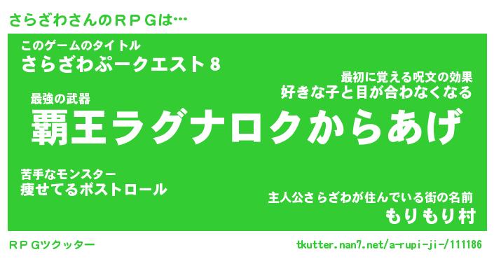 | 伝説のあだ名 | 『封印されし竜騎士さらざわ』 |