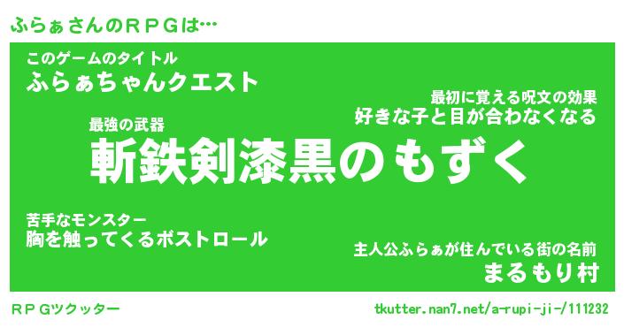 | 男性向けラノベタイトル風あだ名 | 『ふらぁの憂鬱』 |