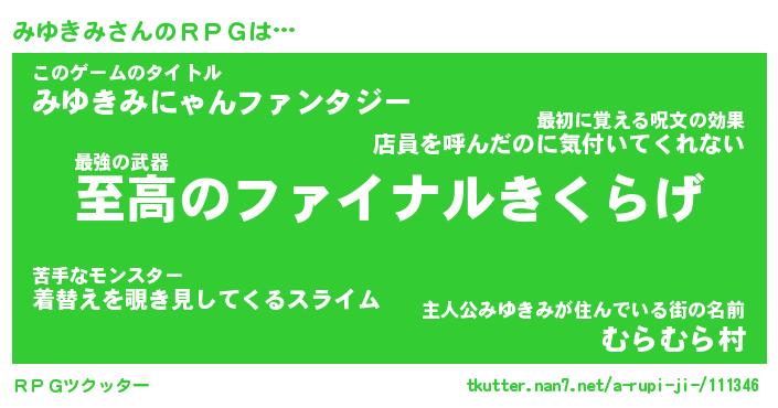 | ファンタジー風あだ名 | 『ミユフェル』『エターナルミユキミー』 |