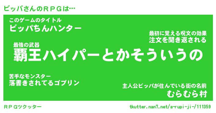 | 男性向けラノベタイトル風あだ名 | 『ビッパアートオンライン』 |