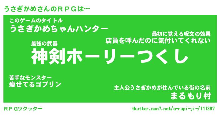 | ファンタジー風あだ名 | 『ウサフェル』『エターナルウサギカメー』 |