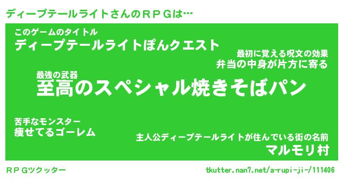 | 男性向けラノベタイトル風あだ名 | 『ディープテールライトアートオンライン』 |