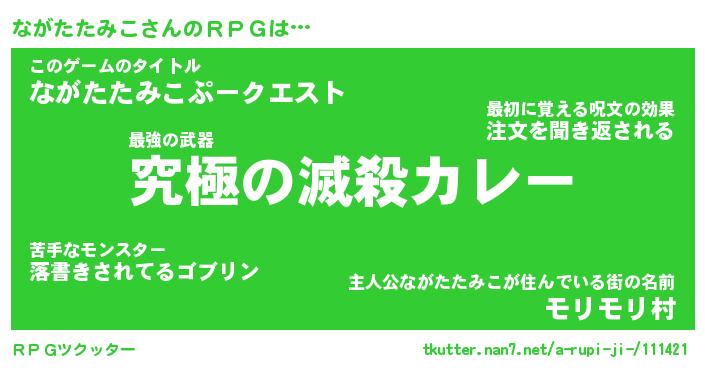 | 男性向けラノベタイトル風あだ名 | 『ナガタタミコアートオンライン』 |