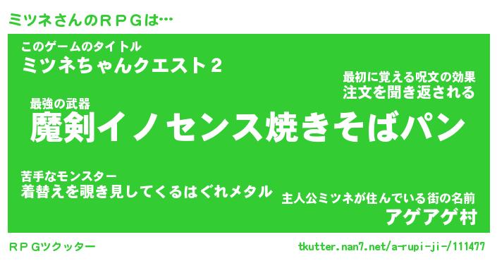 | 胡散臭い通販商品みたいなあだ名 | 『必ず成功する霊験あらたかなお札…その名も「ミツネ」』 |