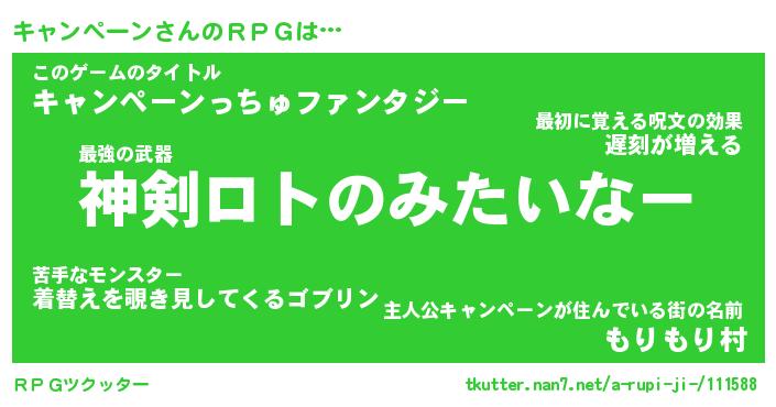 | 男性向けラノベタイトル風あだ名 | 『キャンペーンの憂鬱』 |