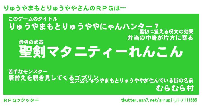 | 伝説のあだ名 | 『伝説のスナイパーりゅうやまもとりゅうやや』 |