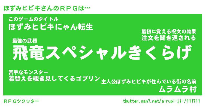 | 男性向けラノベタイトル風あだ名 | 『ホズミヒビキアートオンライン』 |