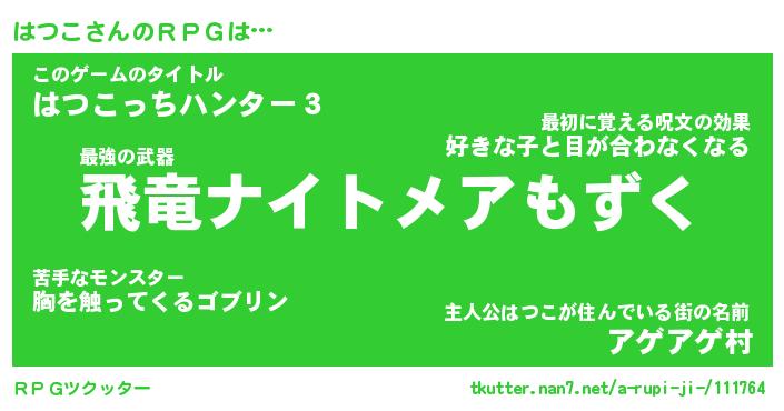 | 伝説のあだ名 | 『封印されしスナイパーはつこ』 |