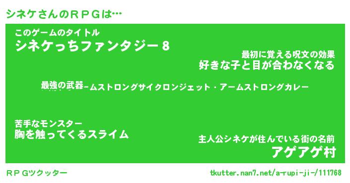 | 男性向けラノベタイトル風あだ名 | 『シネケの憂鬱』 |
