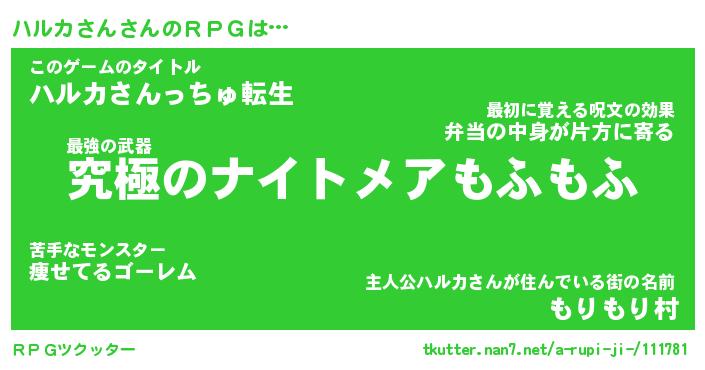 | ファンタジー風あだ名 | 『ハルフェル』『エターナルハルカサンー』 |