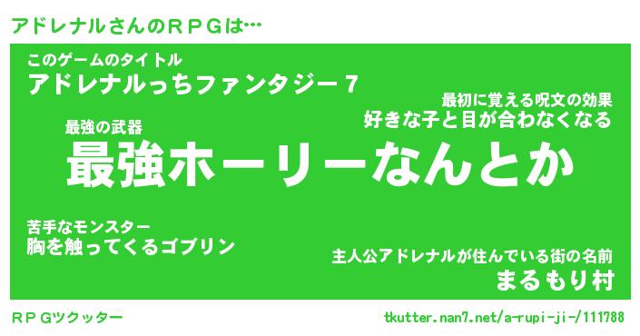 | 料理風あだ名 | 『節約★アドレナルと油揚げの玉子丼』 |