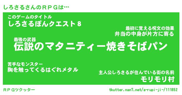 | ファンタジー風あだ名 | 『シロフェル』『エターナルシロサルー』 |