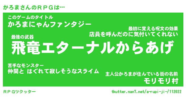 | 2回繰り返すあだ名 | 『かろかろ』『かかろろ』『ぬれぬれ』 |