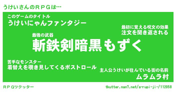 | ファンタジー風あだ名 | 『ウケフェル』『エターナルウケイー』 |
