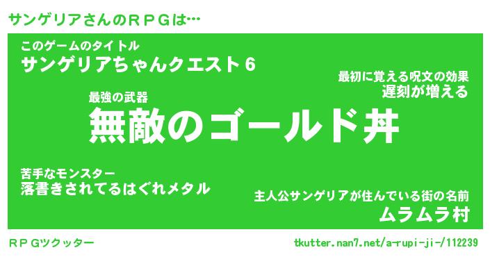 | 男性向けラノベタイトル風あだ名 | 『サンゲリアアートオンライン』 |