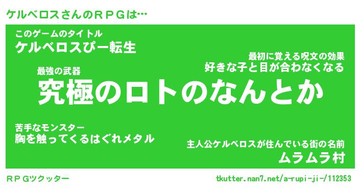 | ヒーロー風カッコイイあだ名 | 『スーパーケルベロス』『暗黒騎士ケル』 |