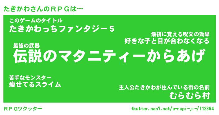 男性向けラノベタイトル風あだ名 | 『たきかわの憂鬱』 |
