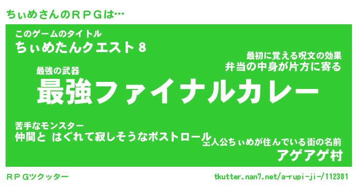 | ファンタジー風あだ名 | 『チィフェル』『エターナルチィメー』 |