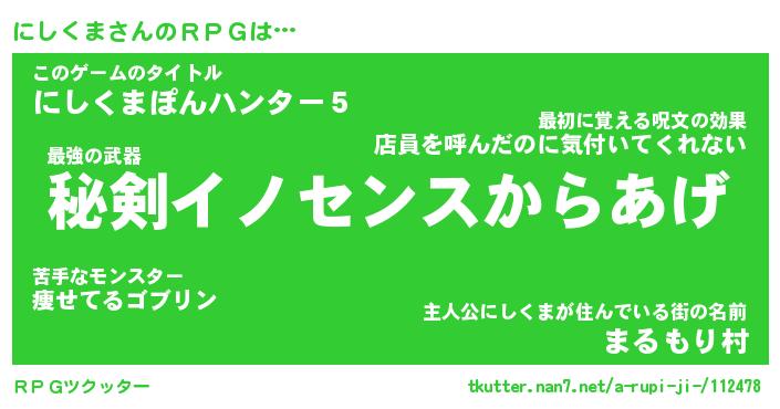 | 伝説のあだ名 | 『伝説のスナイパーにしくま』 |