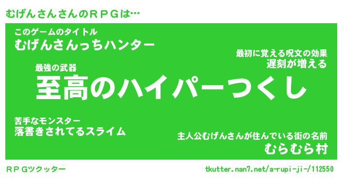 | ファンタジー風あだ名 | 『ムゲフェル』『エターナルムゲンサンー』 |