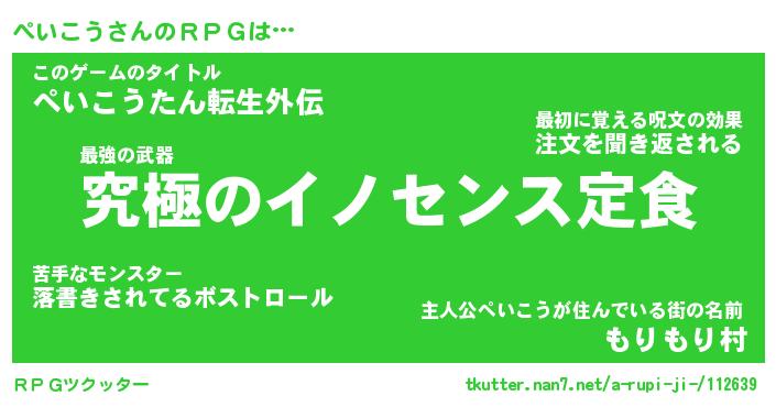 | 男性向けラノベタイトル風あだ名 | 『ペイコウアートオンライン』 |