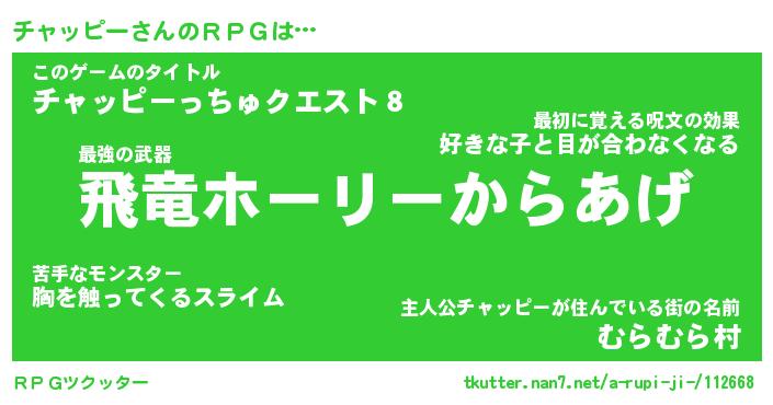| ファンタジー風あだ名 | 『チャフェル』『エターナルチャッピーー』 |