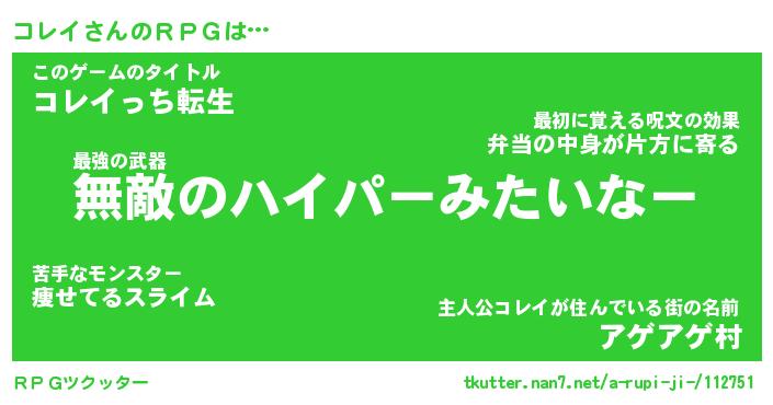 | 男性向けラノベタイトル風あだ名 | 『コレイアートオンライン』 |