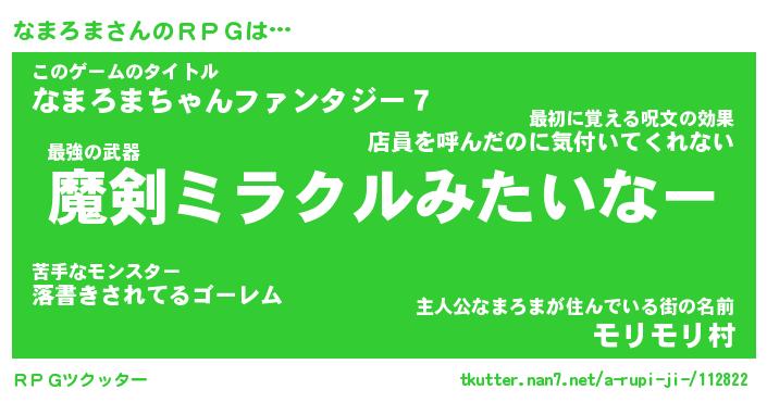 | 伝説のあだ名 | 『伝説の竜騎士なまろま』 |