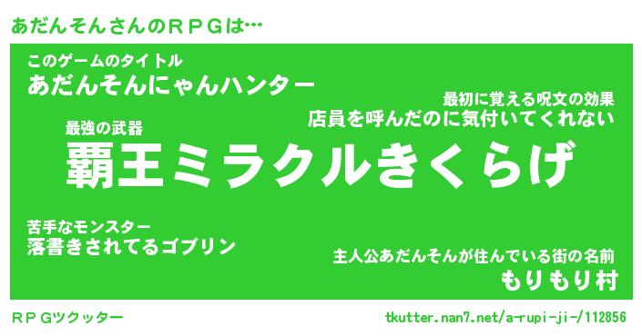 | ツイッター | あだんそんさんのツイッターID『namakemono_man』 |