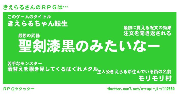 | 胡散臭い通販商品みたいなあだ名 | 『必ず成功する霊験あらたかなお札…その名も「きえらる」』 |