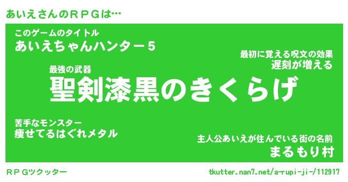 | 伝説のあだ名 | 『伝説のスナイパーあいえ』 |