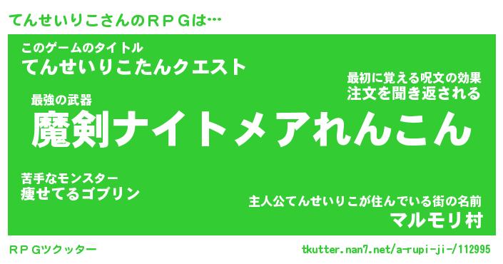 | 男性向けラノベタイトル風あだ名 | 『てんせいりこの憂鬱』 |