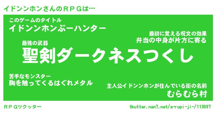 | 男性向けラノベタイトル風あだ名 | 『イドンンホンの憂鬱』 |