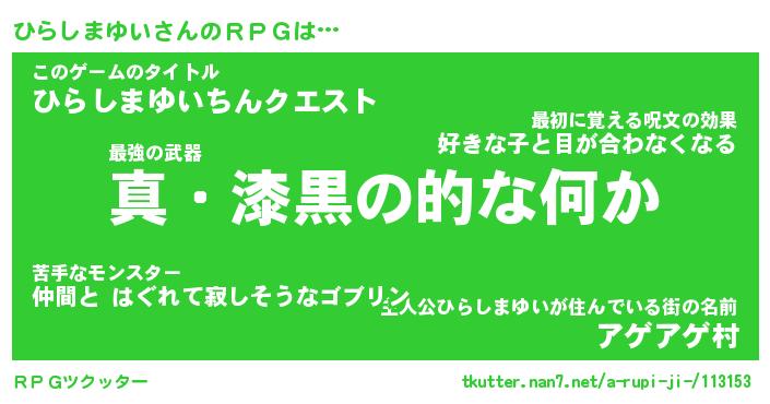 | ヒーロー風カッコイイあだ名 | 『スーパーヒラシマユイ』『天弓騎士ヒラ』 |