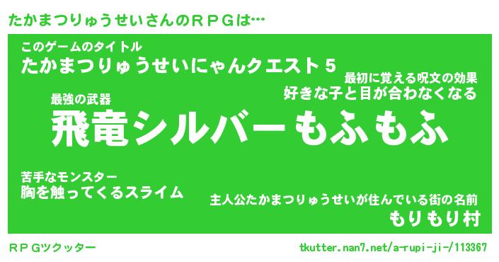 | 胡散臭い通販商品みたいなあだ名 | 『億万長者になれる水晶球…その名も「たかまつりゅうせい」』 |