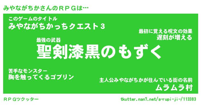 | ヒーロー風カッコイイあだ名 | 『スーパーミヤナガチカ』『暗黒騎士ミヤ』 |