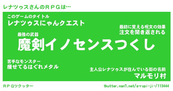 | 伝説のあだ名 | 『伝説のスナイパーレナツゥス』 |