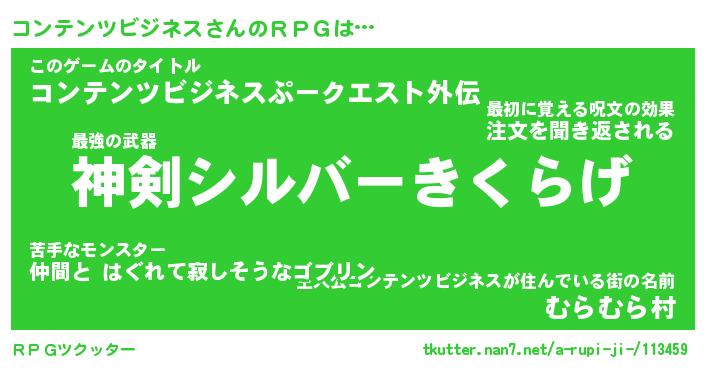 | 男性向けラノベタイトル風あだ名 | 『コンテンツビジネスの憂鬱』 |