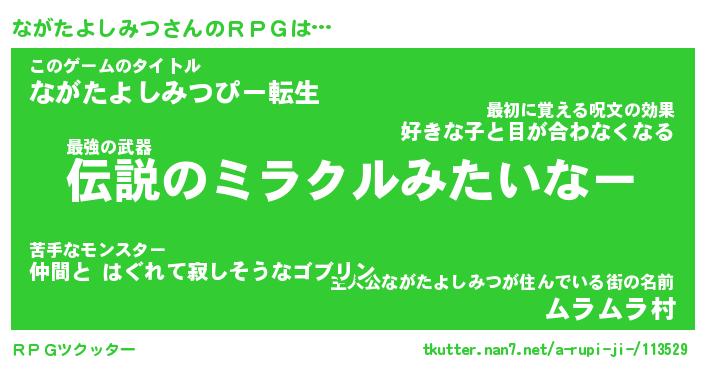 | 男性向けラノベタイトル風あだ名 | 『ながたよしみつの憂鬱』 |