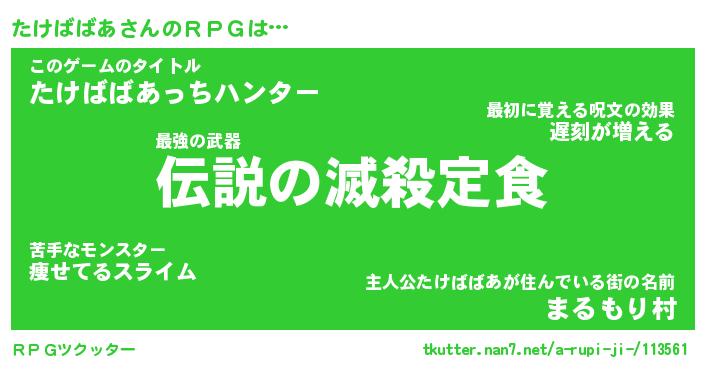 | ファンタジー風あだ名 | 『タケフェル』『エターナルタケババアー』 |