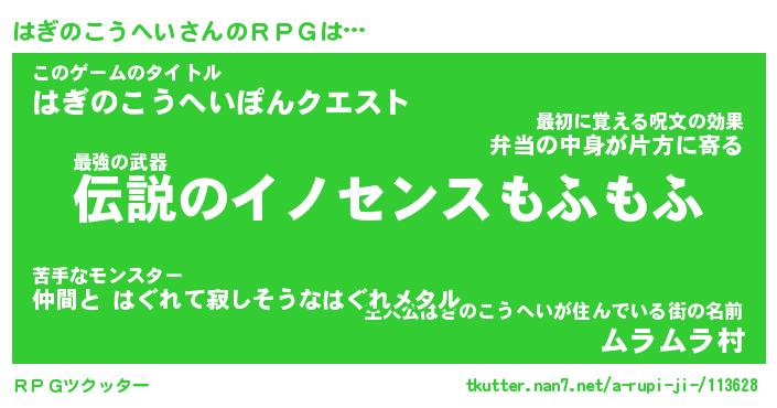 | 欧米人風あだ名 | 『マイケルはぎのこうへい』 |