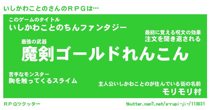 | 胡散臭い通販商品みたいなあだ名 | 『必ず成功する霊験あらたかなお札…その名も「いしかわことの」』 |