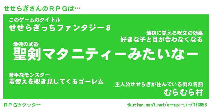 | ファンタジー風あだ名 | 『セセフェル』『エターナルセセラギー』 |