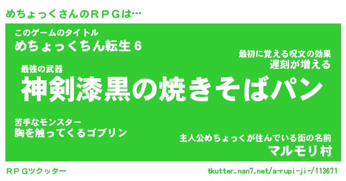 | 男性向けラノベタイトル風あだ名 | 『めちょっくの憂鬱』 |