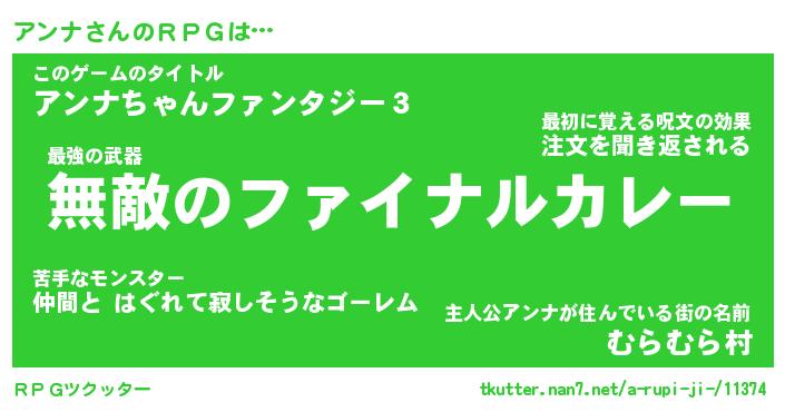 | ファンタジー風あだ名 | 『アンフェル』『エターナルアンナー』 |