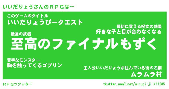 | 男性向けラノベタイトル風あだ名 | 『イイダリョウアートオンライン』 |