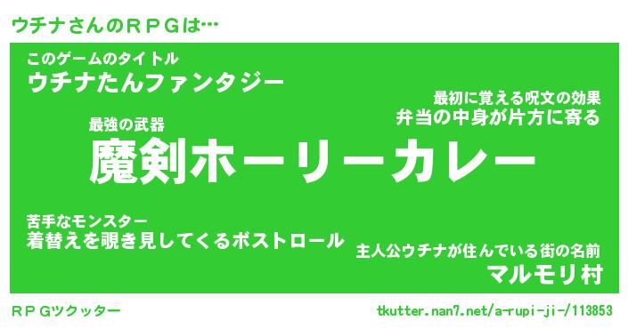 | ファンタジー風あだ名 | 『ウチフェル』『エターナルウチナー』 |
