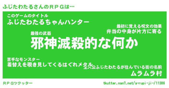 | 伝説のあだ名 | 『封印されしスナイパーふじたわたる』 |
